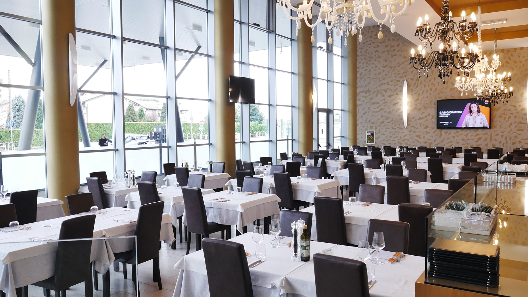 Il ristorante La Vetrata è il luogo adatto per ogni tipo di occasione. In un ambiente sobrio ma elegante caratterizzato dalla grande vetrata che dona luminosità alla grande sala, potrai gustare i piatti tipici della cucina italiana e lombarda.